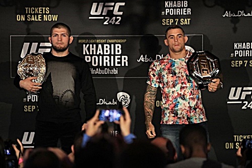 UFC242의 메인 경기는 라이트급 타이틀매치인 현 챔피언 누르마고메데프 하빕과 잠정챔피언(랭킹1위) 더스틴 포이리에 의 경기입니다.